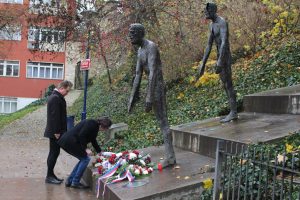 Vedení Ústavu pro studium totalitních režimů – ředitel Ladislav Kudrna a 1. náměstek Kamil Nedvědický – položilo květinu u Památníku obětem komunismu a vzdali hold všem, kteří bojovali proti rudému totalitnímu režimu.