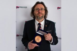 (21. 11. 2025) – Řediteli Ústavu pro studium totalitních režimů Ladislavu Kudrnovi byla ve čtvrtek 20. listopadu slavnostně předána pamětní plaketa od náměstka policejního prezidenta