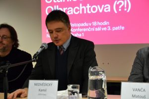 Veřejnou debatu vyvolalo stanovisko ředitele Ústavu pro studium totalitních režimů, který upozornil na problematičnost pojmenování stanice po Ivanu Olbrachtovi – spisovateli, jenž byl aktivním podporovatelem komunistického režimu a propagátorem jeho ideologie. Kudrnův apel otevřel širší veřejnou diskusi nejen o tomto konkrétním názvu, ale i o dalších navrhovaných označeních, například Náměstí bratří Synků. Během debaty zazněl i dřívější výrok ředitele ÚSTR: „Ústav pro studium totalitních režimů se ostře vymezuje vůči názvu první vyražené stanice metra D nesoucí název Olbrachtova. Proč musí nová stanice metra nést jméno po Ivanu Olbrachtovi, spisovateli, který podporoval komunismus a sám byl komunista? Chceme, aby se naše děti ptaly svých rodičů, učitelů, kdo to byl ten Olbracht? To byl ten, co napsal agitační pamflet Anna proletářka? Nebo chceme, aby se ptaly, kdo to byli Bryks či Toufar?“ Ladislav Kudrna současně zdůraznil, že je pouze nás jaký odkaz minulosti – a tím i budoucnosti – předáme nastupující generaci. „Pokud chceme, aby mladí lidé byli odolní vůči totalitním, diktátorským a autoritativním režimům, musíme jim předkládat pravdivý a nezkreslený obraz zločinné povahy komunistického režimu. Žádný totalitní režim nevede k osvobození člověka, ale k jeho zotročení,“ uvedl doslova.